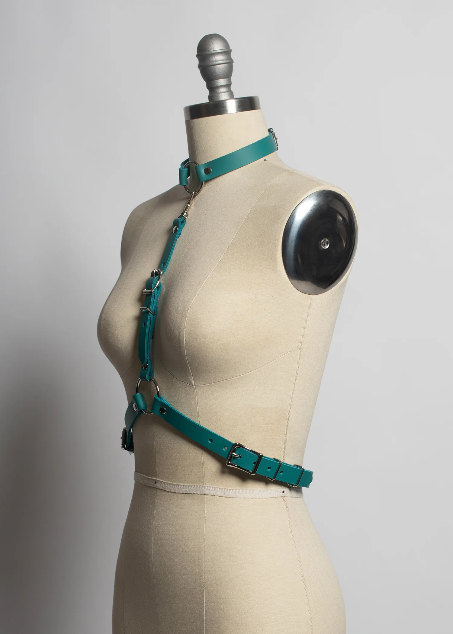 The Svelte Harness is one of our best sellers, and now is available in colorful leather!Ā Fit is adjustable with buckles and straps. Silver-toned nickel plated steel hardware.
