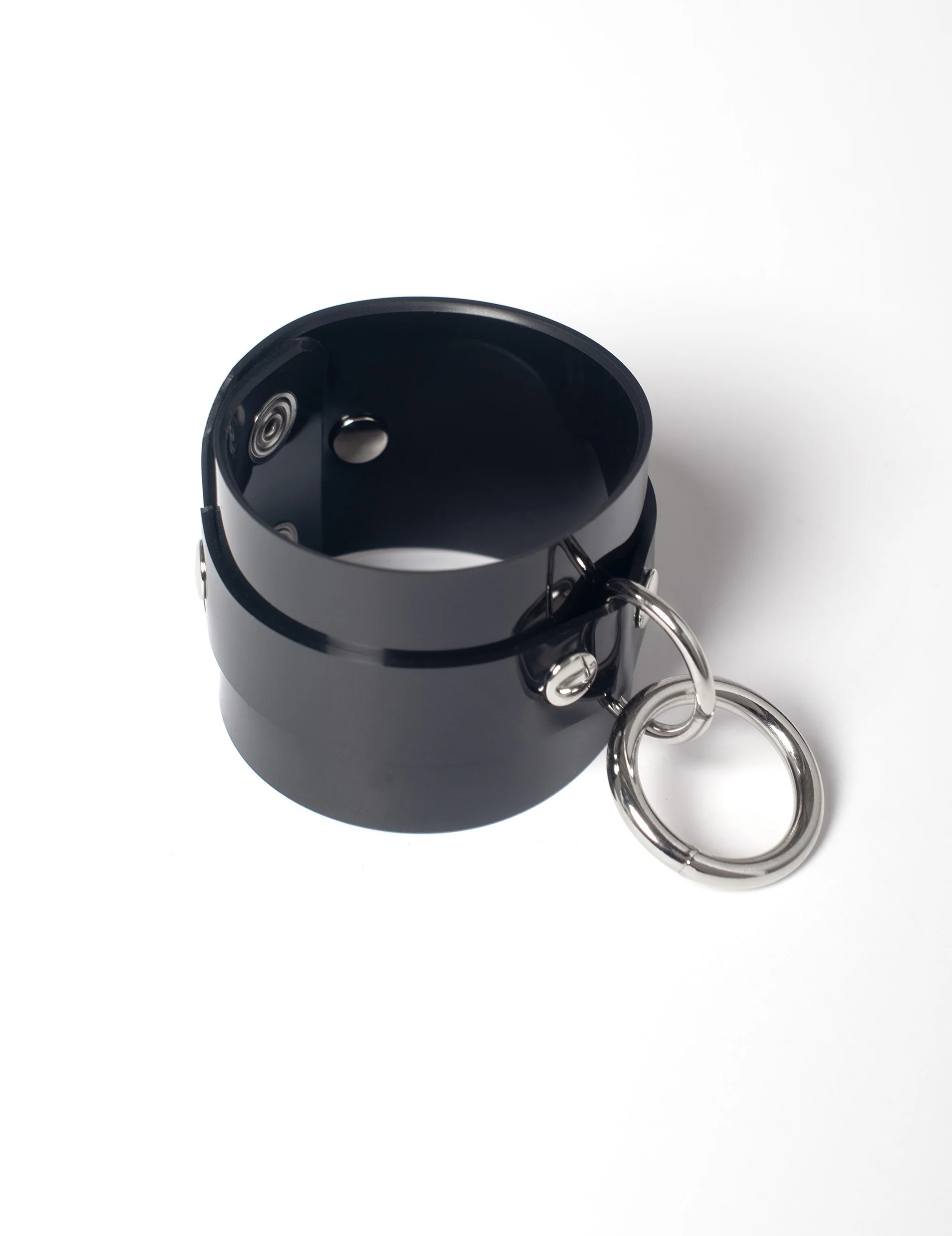 These classic bondage cuff bracelets featureĀ o-ring hardware and snap closures. Can be purchased individually or as a pair. Available in black vegan leather, leather, or PVC.