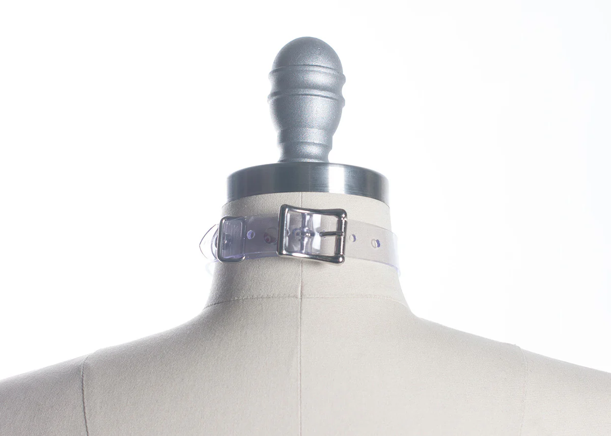 Classic o-ring collar in thick PVC, vegan leather, or leather. Fit is adjustable with buckle.Ā Ā