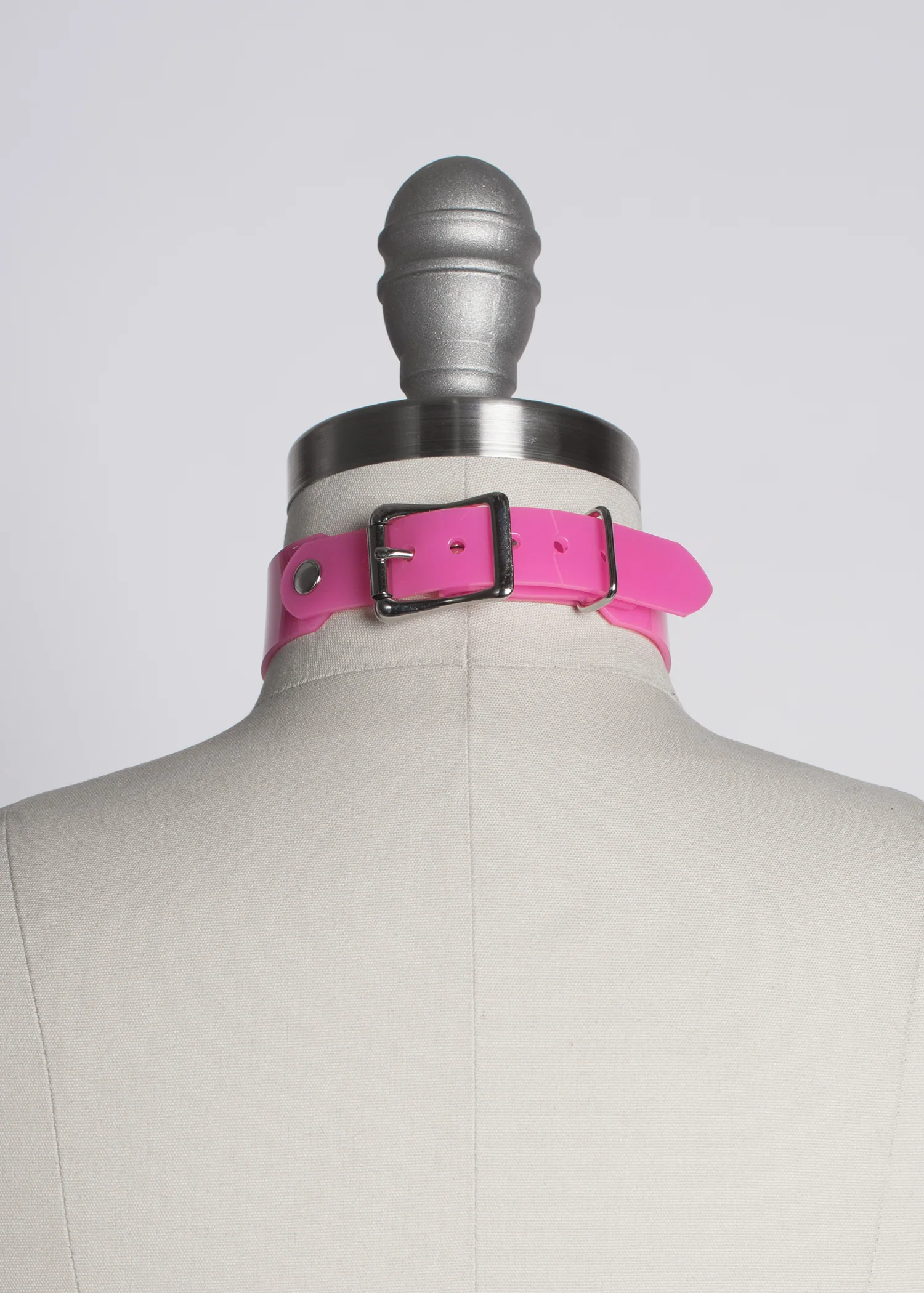 This beautiful, unique pink PVC collar will add the perfect pop of color to any outfit!